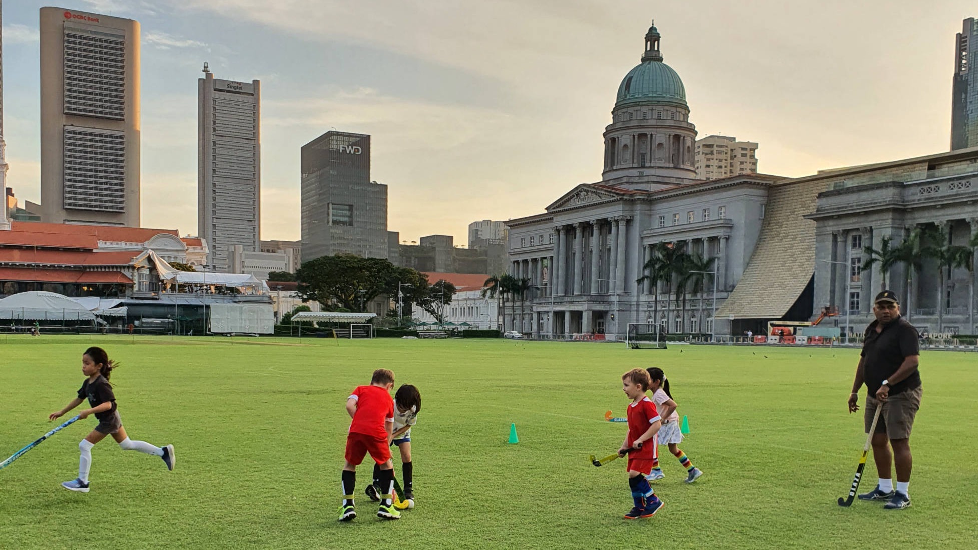 One would be hard-pressed to find a better location to play hockey right in the heart of the Civic District and downtown Singapore.